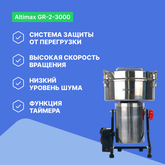 Мельница Altimax GR-2-3000 включают в себя мощный двигатель, способный обеспечить высокую скорость вращения ротора, что позволяет быстро и эффективно измельчать материалы различной твердости.