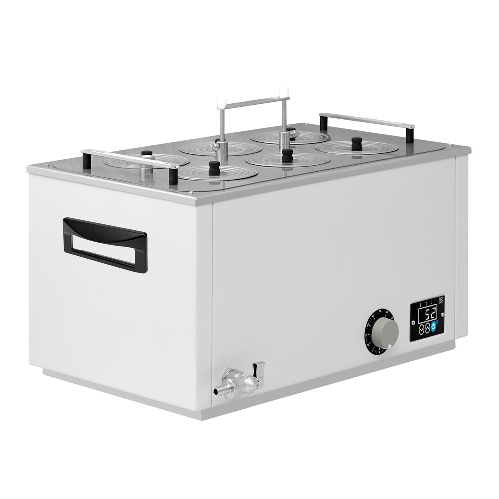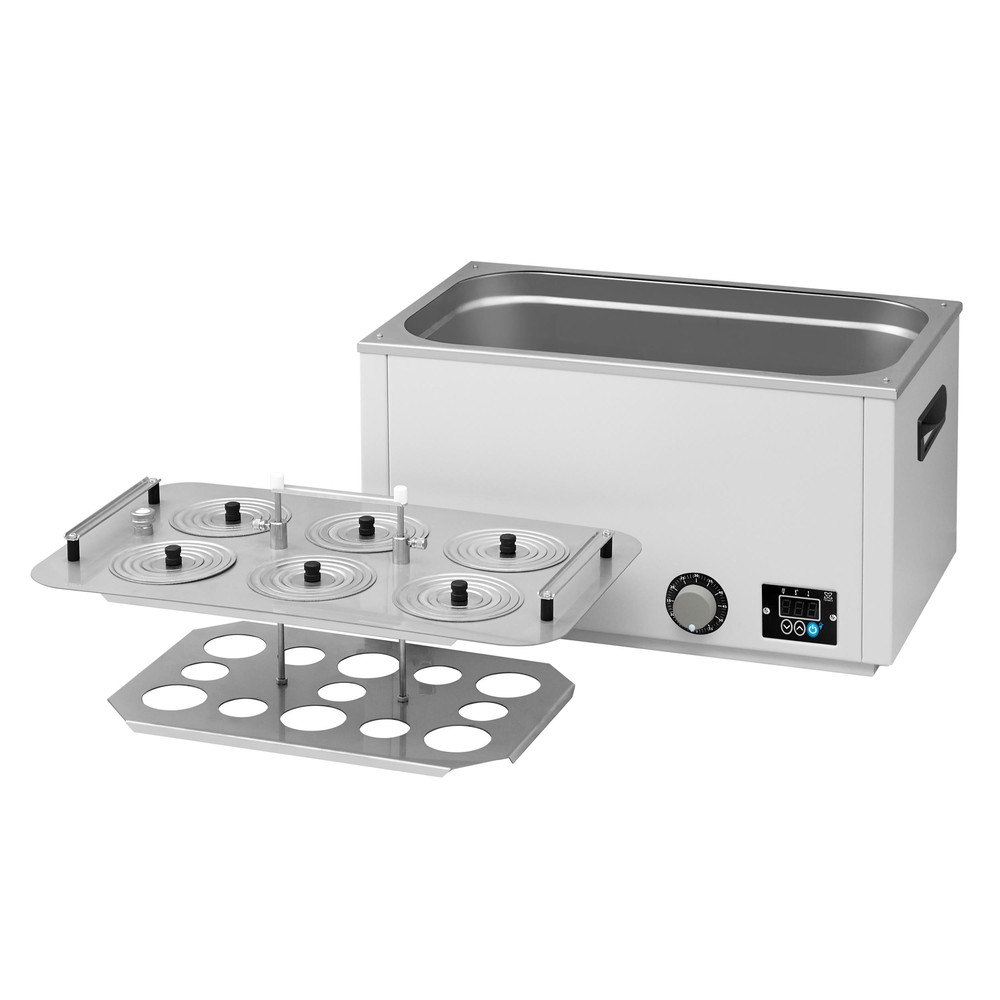 Универсальная баня ЛБ63 оснащена легко извлекаемой корзиной с подвижным дном для размещения лабораторной посуды различного размера и стальными концентрическими кольцами для ее уплотнения.