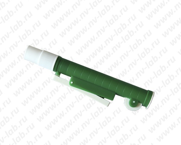 Пипетатор (фингер) для пипеток до 10 мл. Механический поршневой аналог  лабораторной груши для работы со стеклянными и пластиковыми пипетками объёмом до 10 мл. Позволяет безопасно и точно проводить забор, сброс, дозирование, перенос жидкостей. фиксатор положения поршня — зубчатое колесико; плотное герметичное присоединение пипетки за счет конического отверстия с силиконовой муфтой; разбирается, автоклавируется; устойчив к действию кислот и щелочей. Слив жидкости из пипетки может осуществляться следующими способами: — при дискретном сливе (т. е. разливке жидкости из одной пипетки порциями по разным емкостям) он осуществляется за счет вращения зубчатого колесика; — при полном сливе способ зависит от того, какая пипетка используется: градуированная «на вытекание» или «на выдувание»; при использовании пипетки «на вытекание» легким нажатием на клапан, расположенный на боку пипетатора, вакуум в рабочем цилиндре сбрасывается, и жидкость свободно вытекает из пипетки; если используется пипетка «на выдувание», то сначала, аналогично используя клапан, жидкости дают стечь, а затем резко опускают головку поршня, расположенную на верхнем конце пипетатора. Поршневые пипетаторы могут использоваться с серологическими или пастеровскими пипетками любого типа, поскольку присоединение пипетки осуществляется за счет силиконовой муфты, имеющей коническое сужающееся отверстие, которая позволяет плотно и герметично присоединить пипетку любого диаметра.
