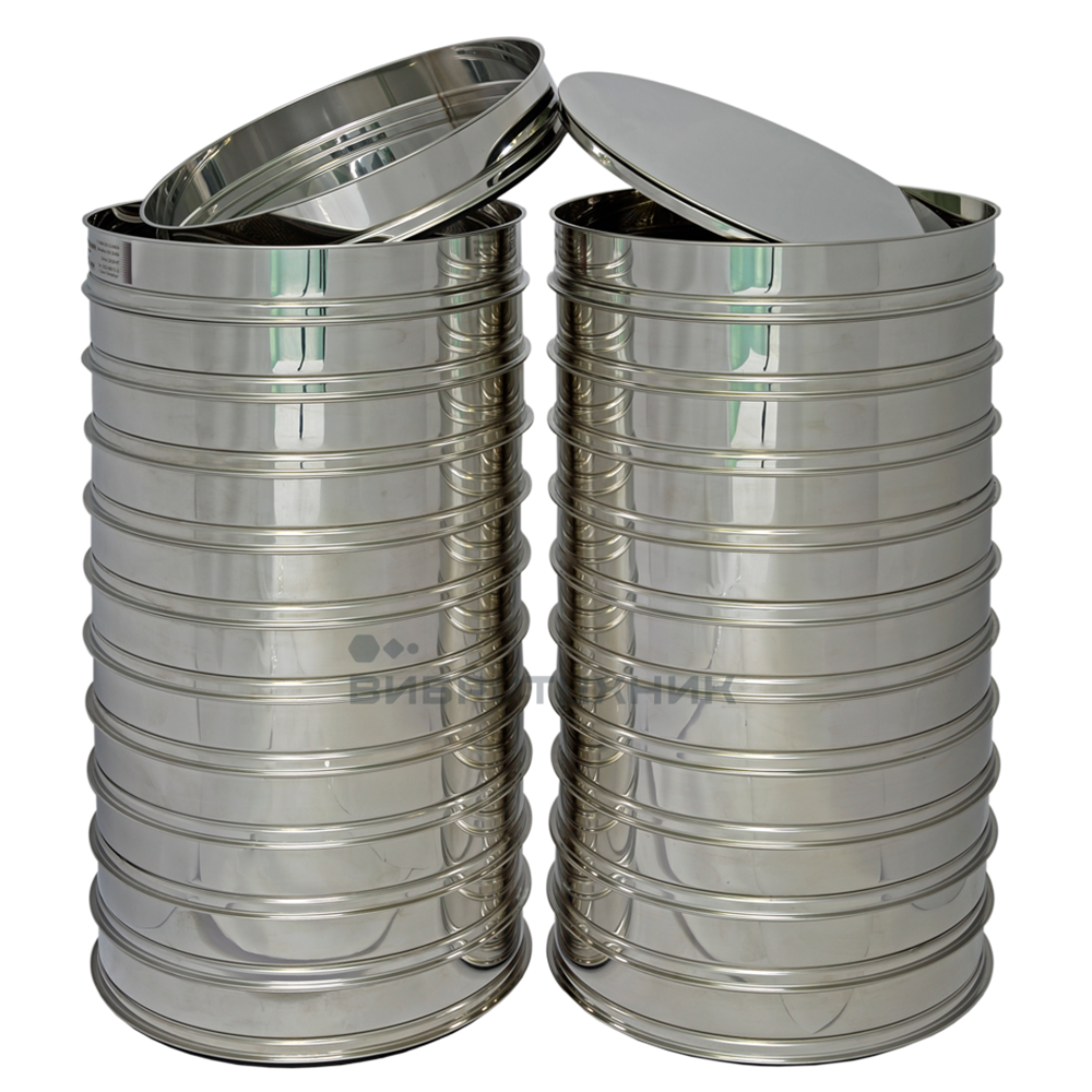 Ситовой анализ выполняется с помощью Анализатора с 19 ситами, поддоном и крышкой. Колонна сит может быть укомплектована промежуточными кольцами для увеличения высоты верхних сит, что позволяет загружать на пробы большего объема.