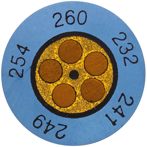 Круглые термоиндикаторы testoterm – самоклеющаяся термостойкая фольга с термочувствительными элементами. Используется для контроля температуры и управления процессом нагрева.