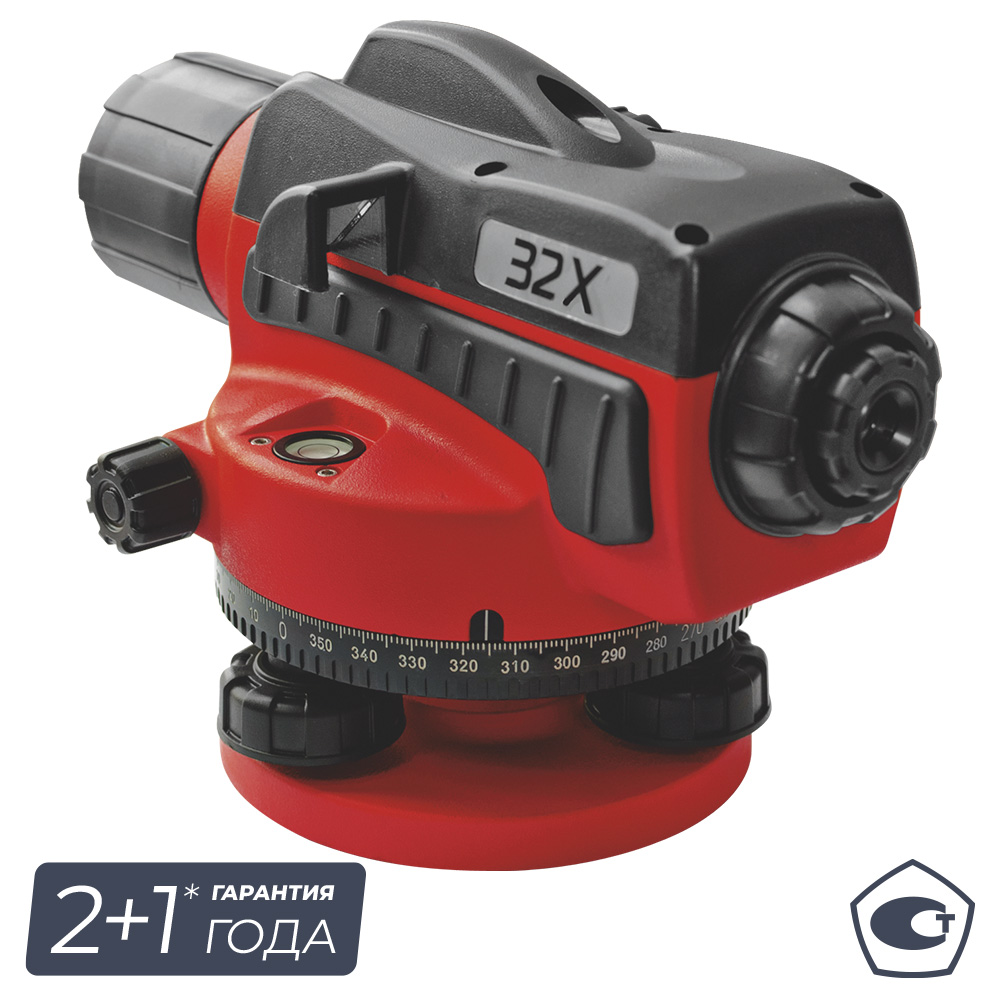 Нивелир имеет горизонтальный лимб с ценой деления 1 градус и винтом бесконечного наведения, а для удобства поиска цели сверху на зрительной трубе расположен оптический визир-целеуказатель.