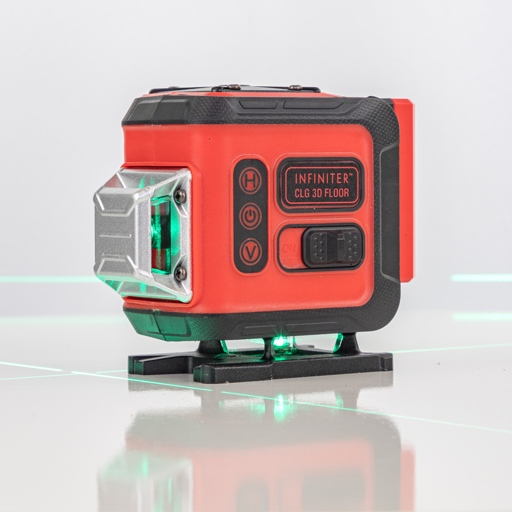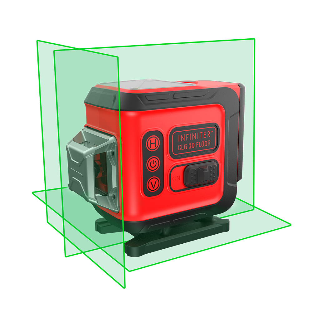 Лазерный нивелир INFINITER CLG 3D FLOOR проецирует две вертикальные и одну горизонтальную плоскости с углом развертки 360°.