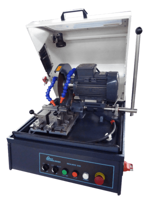Просторная камера отрезного станка оснащена яркой подсветкой и позволяет за несколько секунд сменить отрезной диск и провести обслуживание двигателя. Универсальный Т-образный столик с богатым набором зажимов позволяет работать с образцами любых форм. Система циркуляционного охлаждения образца имеет две настраиваемые форсунки и фильтр охлаждающей жидкости.