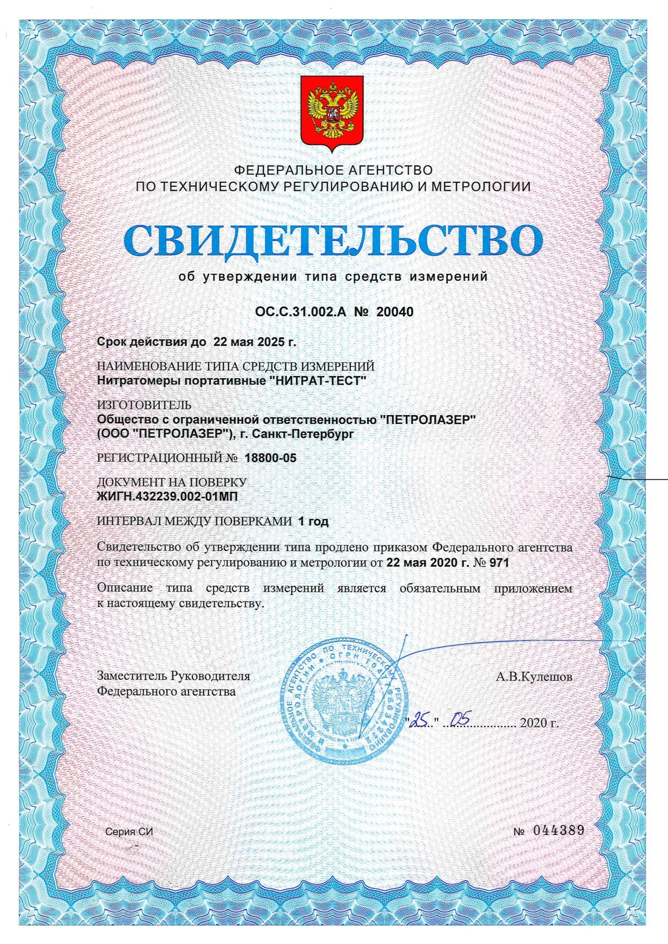 | Номер реестра СИ: | 18800-05 |