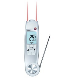 Водонепроницаемый ифнракрасный пищевой термометр Testo 104-IR со складным зондом, вкл. заводской протокол калибровки и батарейки.