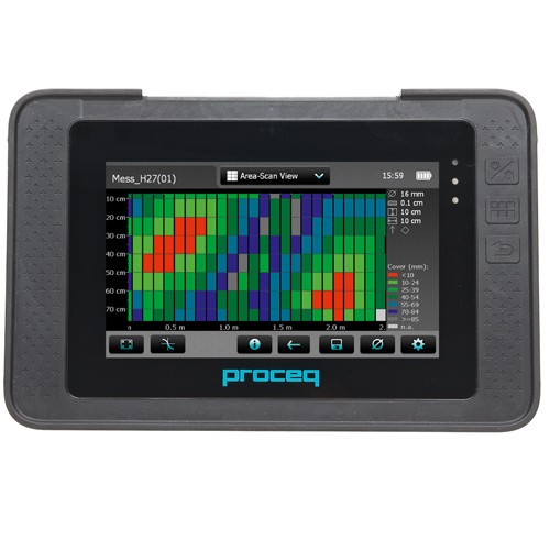Будучи оснащенным сенсорной панелью Profometer нового поколения, прибор обеспечивает контроль над процедурой измерения на объекте в реальном времени. Цветной дисплей с высоким разрешением позволяет производить самые точные измерения и анализ статистических данных на протяжении всего рабочего дня (продолжительность работы батареи > 8 часов).