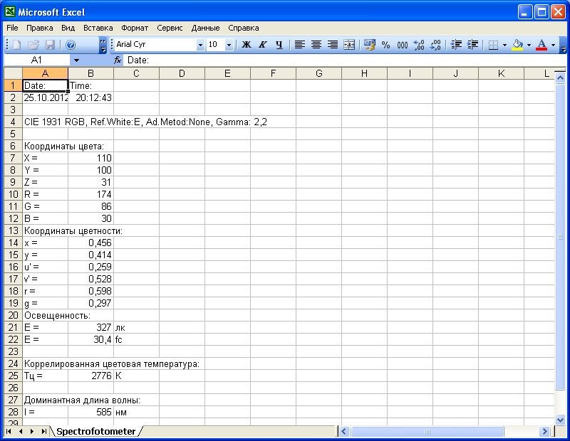 Прибор предназначен для измерения координат цветности и коррелированной цветовой температуры источников света в международной колориметрической системе МКО 1931г. и 1976 г. в плоскости освещённости, создаваемой нормально расположенными источниками.