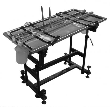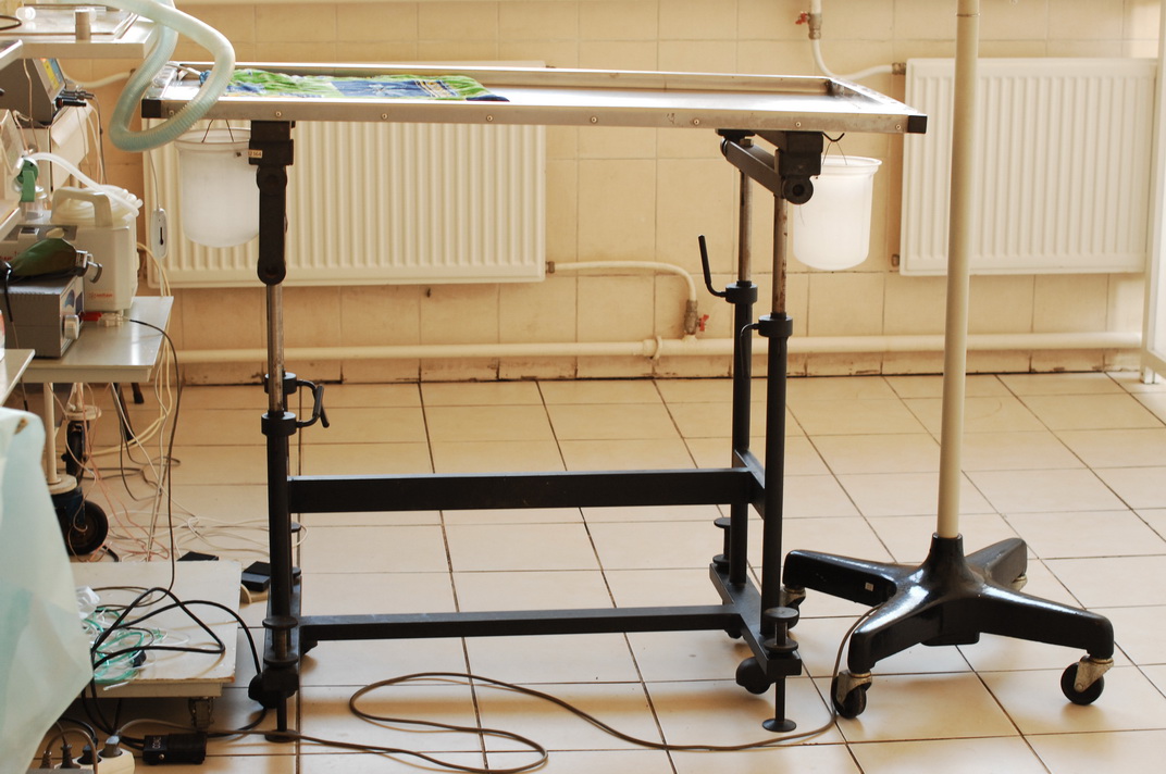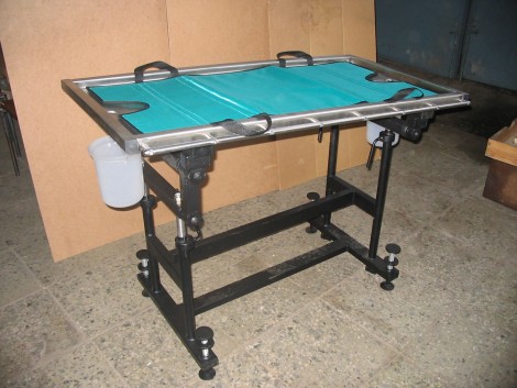 Четыре телескопические стойки на мощной сварной раме обеспечивают регулировку высоты и угла наклона стола, а рациональная развесовка составных частей гарантирует хорошую устойчивость. Широкий диапазон регулировок положения продольных штанг для фиксации тела оперируемого животного позволяет надежно зафиксировать тело и конечности животных любых размеров в любых положениях: лежа на животе, на спине, на боку, стоя и т.д. Водонепроницаемый матрац-носилки предотвращает контакт тела животного с металлической поверхностью столешницы во время операции и позволяет легко перенести его после операции к месту дальнейшего содержания. В комплект поставки входят: