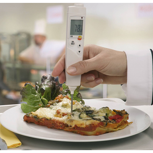 testo 106, термометр для измерения внутренней температуры продукта с тонким и прочным измерительным наконечником, идеально подходит для быстрого измерения внутренней температуры в гастрономии, столовых, ресторанах, супермаркетах и т.п.