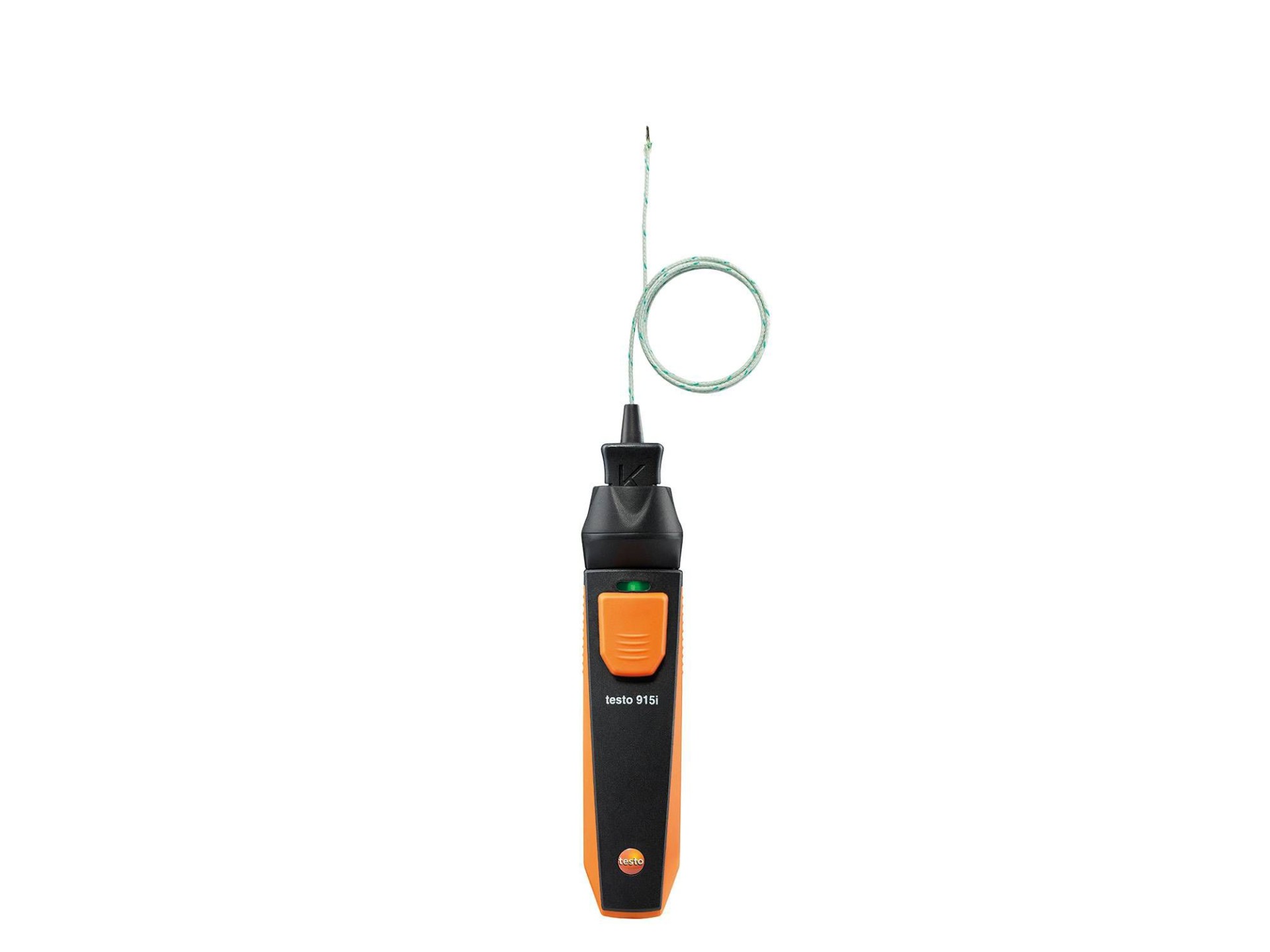 Беспроводной смарт-зонд testo 915i с гибким зондом температуры (т/п тип К, кабель в оболочке из стекловолокна, длина 800 мм), вкл. батарейки и заводской протокол калибровки.