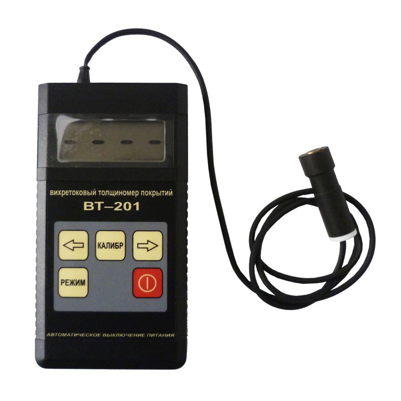 Вихретоковый толщиномер покрытий ВТ-201 предназначен для измерения толщины неметаллических покрытий (краска, эмаль, пластик и т.д.) на немагнитном основании (алюминий, медь, титан) в соответствии с ГОСТ Р 51694, ИСО 2808.