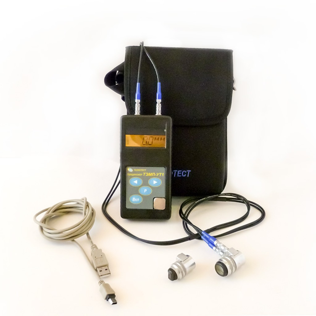 ТЭМП-УТ1 – универсальный ультразвуковой толщиномер, предназначенный для измерения толщины изделий, выполненных из однородных материалов: металлов (включая чугун), сплавов, резины, пластика и других, при одностороннем доступе к ним. ТЭМП-УТ1 также используется для измерения скорости распространения УЗ-колебаний в материале изделия, причем работает практически с любыми раздельно-совмещенными ультразвуковыми преобразователями. ТЭМП-УТ1 применяется на энергетических, машиностроительных, трубопрокатных, судостроительных, судоремонтных и других предприятиях.