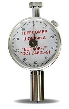 ТВР-А твердомер (дюрометр) Шора тип А с аналоговым индикатором предназначен для измерения твёрдости по шкале Шора тип А резины в соответствии с ГОСТ 263-75 и мягких пластмасс в соответствии с ГОСТ 24621-2015 (ISO 868-2003), в т.ч. мягких полиуретанов: эластомера, ПВХ, силикона, продуктов из натурального каучука, неопрена, смолы, полиэстера, кожи, полиграфических валков и т.п.