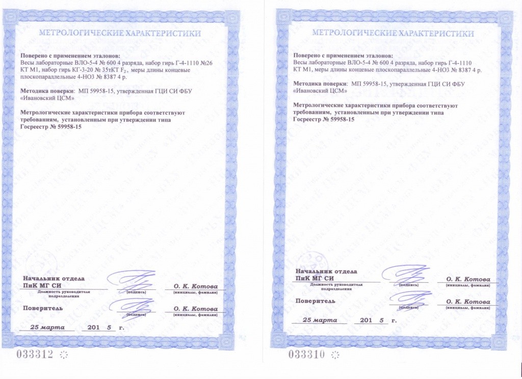 Паспорт c Методикой Поверки и отметкой о калибровке твердомера при выпуске из производства