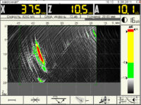После обнаружения дефектов обеспечивается возможность оценки их реальных размеров с помощью курсора, перемещаемого в трех координатах (расстояние, длина, глубина), что существенно упрощает получение информации о месте расположения и протяженности выявленных дефектов.