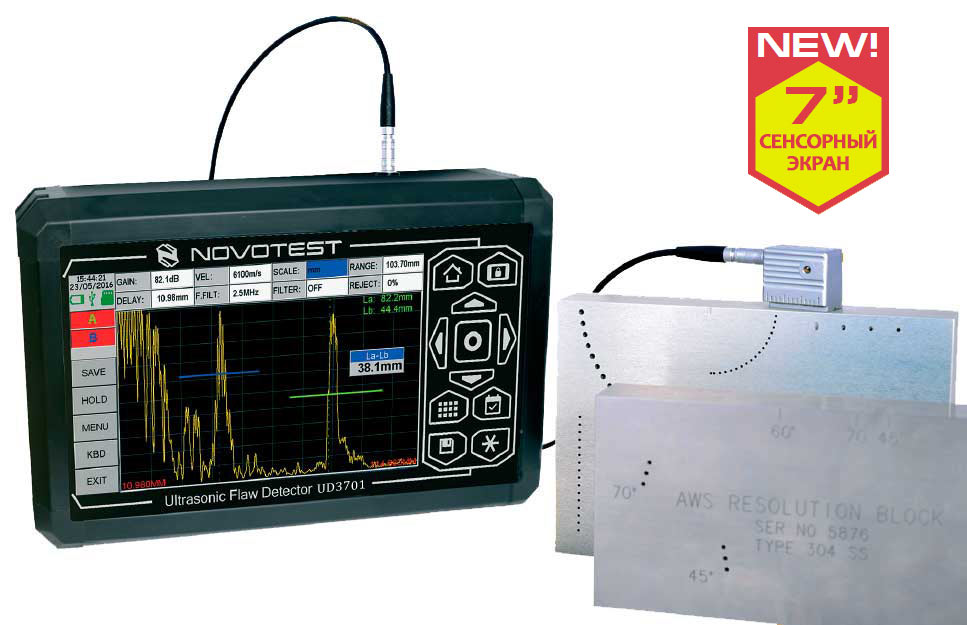 Большой тачскрин (сенсорный экран), легкий и эргономичный ударопрочный металлический корпус, самая передовая электронная начинка и функциональные возможности делают NOVOTEST УД3701 незаменимым инструментом современного дефектоскописта.