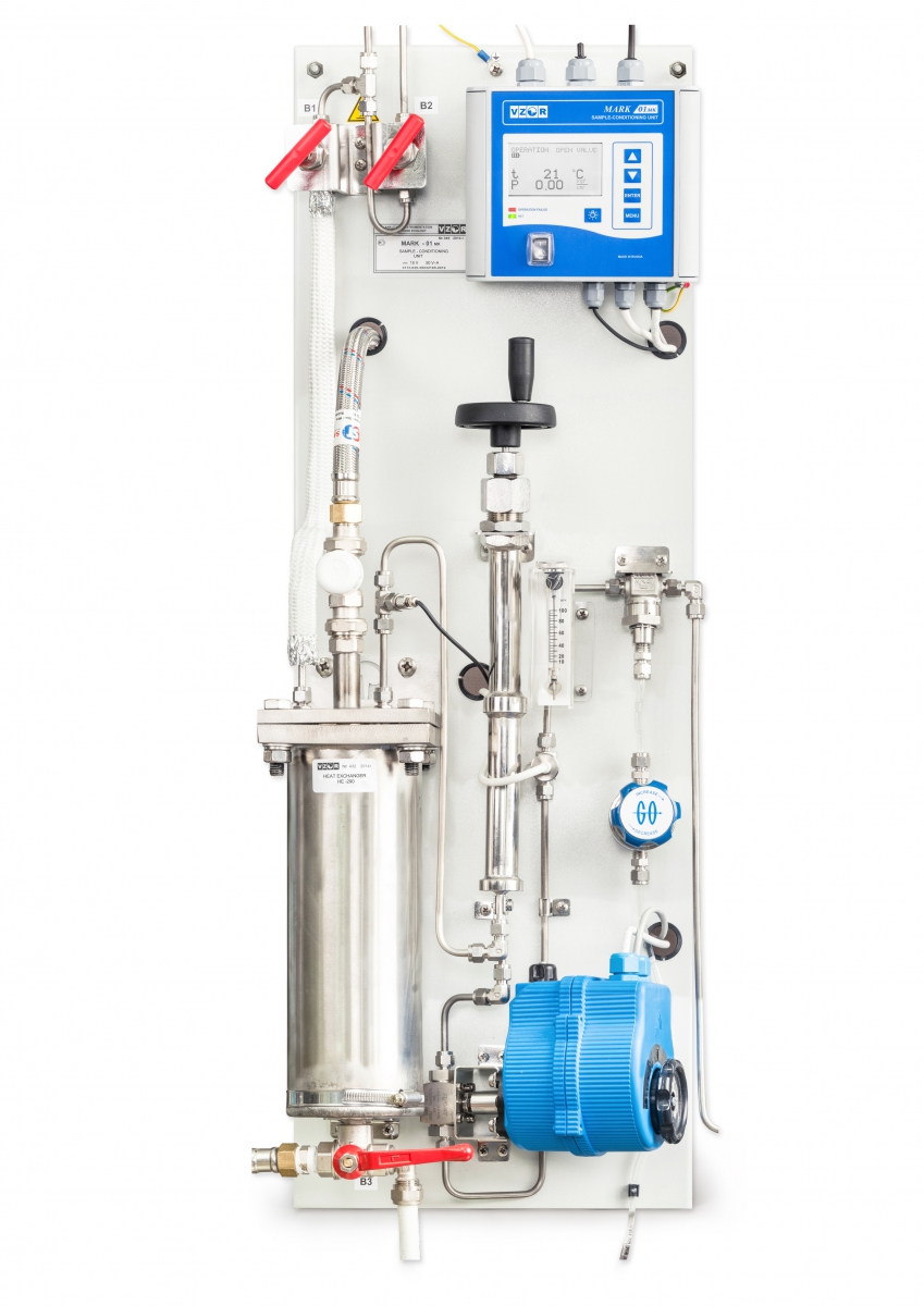 Охлаждение, дросселирование, фильтрация и регулирование расхода пробы. Индикация температуры, давления и расхода пробы. Индикация температуры, давления и расхода охлаждающей воды (опционально). Подготовка пробы для приборов контроля водно-химических режимов на объектах энергетики.